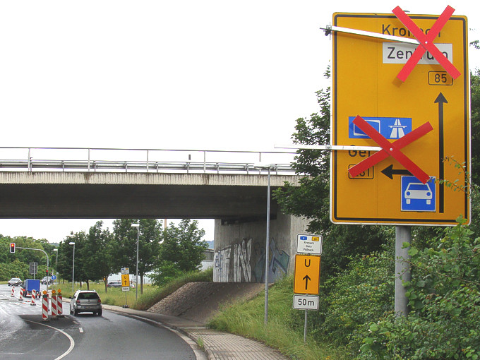 Koordination von Baumaßnahmen ist toll. Wenn alles gut läuft, gibt es eine Umleitung auf der Umleitung. Das sieht dann ggf. so aus: