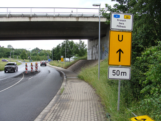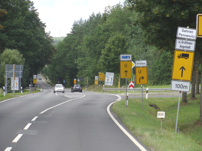 "OU Heppenheim gesperrt" falsch!? Jo. Die Ortsumfahrung ist sowieso nicht gesperrt. Schön ist aber auch wieder, dass sich der Umleitungshinweis "Bensheim" nur am VZ 454 findet, auf dem 458er (oder was immer das sein soll) aber völlig fehlt. -------------------- Regelflecken, Abbiegetaschen, feindliches Grün, Idealfahrer, "faktische Fußgängerzonen", Kletterweichen, Bettelampeln, Lückenampeln, ... - es gibt Sachen, die gibt es nur im Straßenverkehr |