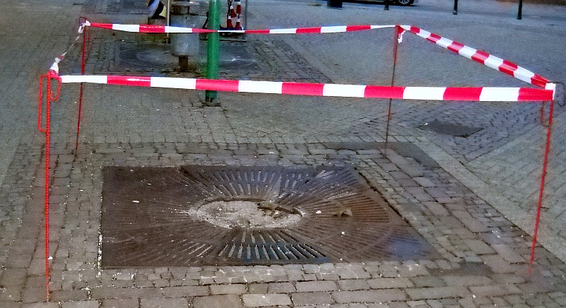 Gestern habe ich die krummen Eisenstangen erst ziemlich spät entdeckt, die da von irgendwem zwischen die Pflastersteine auf dem Seitenstreifen gesteckt worden waren. Das dazwischen gespannte Flatterband war auch erst von der Seite richtig sichtbar. ![]() Heute hat jemand dazugelernt und die Markierung etwas hervorgehoben. Zusätzlich wurden jetzt Leitkegel aufgestellt. ![]() Update: heute sind noch ein paar Leitbaken auf dem Gehweg dazu gekommen. ![]() Lustig, so ein Adventskalender im Straßenverkehr, wo jeden Tag eine Kleinigkeit dazukommt. Bis es vielleicht irgendwann kurz vor Weihnachten doch noch eine "richtige" Baustelle wird? |
