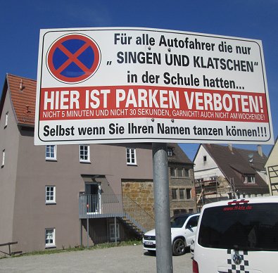 Bei einer Freundin von mir leider Alltag. Sobald das Tor mal offensteht, ist der hinten liegende als privat gekennzeichnete Hof voll mit Fremdparkern der nahen Einkaufsstraße. "Wo sollen wir denn sonst parken?!!" Dann macht man halt das Tor zu und schließt ab, denn alle, die berechtigt parken, haben schließlich einen Torschlüssel. Man ist ja wohl kaum verpflichtet zuvor zu kontrollieren, ob nur berechtigt dort parken. Die andere Möglichkeit ist ein Schild: Privatparkplatz Gebührenpflichtiges Fremdparken erlaubt Parkgebühr: 65,- € Bitte überweisen Sie die Parkgebühr auf folgendes Konto: xxxxxx Natürlich müssen noch die allgemeinen Geschäftsbedingungen ausgehängt sein. Die zweite Möglichkeit ist natürlich nicht ganz ernst gemeint. ![]() Gruß Uwe |