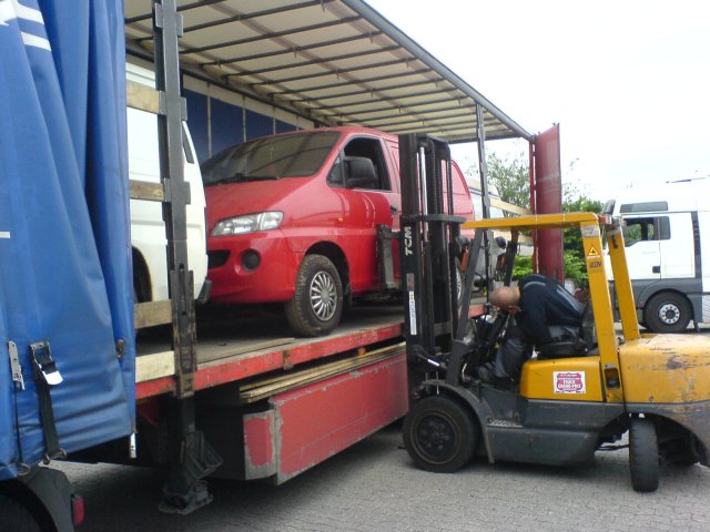 Ja, nur war der Stapler etwas größer, die zu staplernden Autos Ducatos und nur zu zweit. Die im Kühlwagen waren ein T3-Bulli und ein Volvo 740, aber jeweils einzeln. Alle gingen übrigens nach Polen.