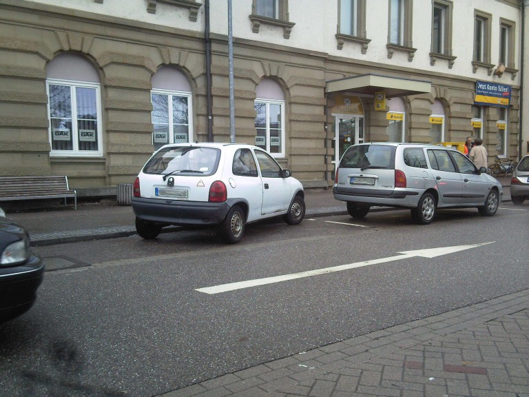 Sie fährt seeeehr knapp an dem hinter ihr stehendem Auto vorbei (hinter dem Auto das man links sieht sieht man es noch ein bisschen), dass vielleicht maximal 1cm Platz war (habe gedacht sie hätte es berührt, aber habe nichts erkennen können), ohne dass sie das auch nur annähernd bemerkt hätte, um dann so stehen zu bleiben. ![]() |
